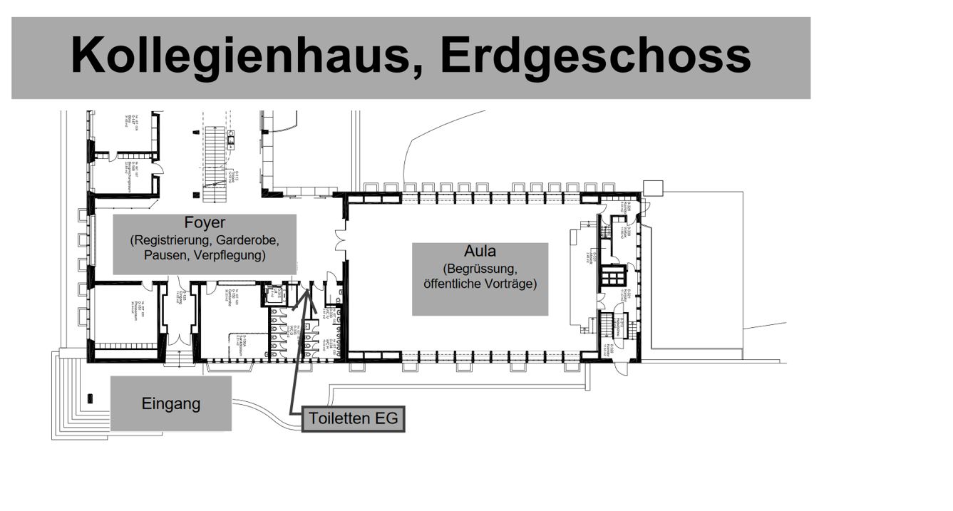 The plenary events such as greetings, plenary lectures, etc. take place here. In the foyer of the auditorium you will find the registration office, a cloakroom, the buffet and coffee machines as well as toilets.